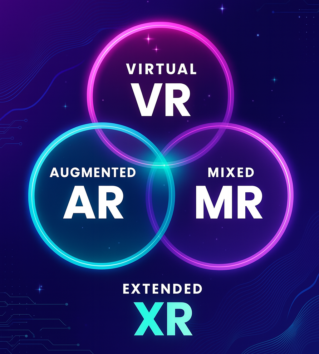 Término paraguas que abarca todas estas tecnologías: realidad aumentada, realidad virtual y realidad mixta. Su propósito es describir cualquier tipo de experiencia inmersiva que combine el mundo físico con el digital.